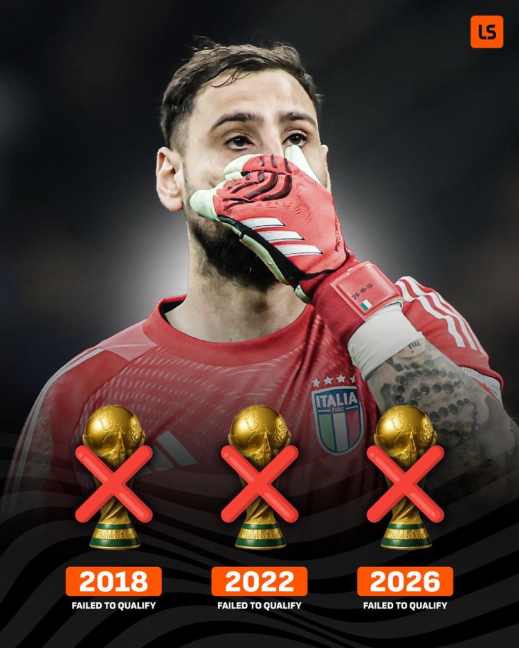 意大利连续3届世界杯未能在预选赛中出线,他们是首支连续无缘三届世界杯的前冠军球队。